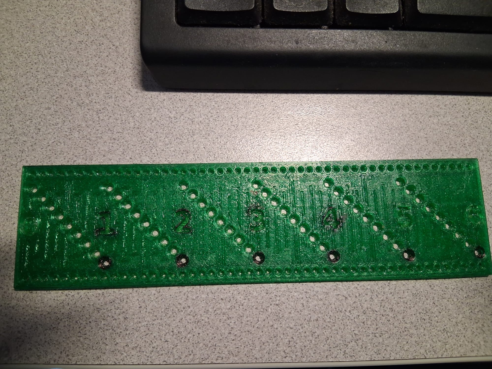 I made a few changes after I did this print, note the black marking is sharpie that I tried coloring in the numbers with but my sharpie is just about dried out. I also made the numbers and lines so they would print on the first layers so they will look good.