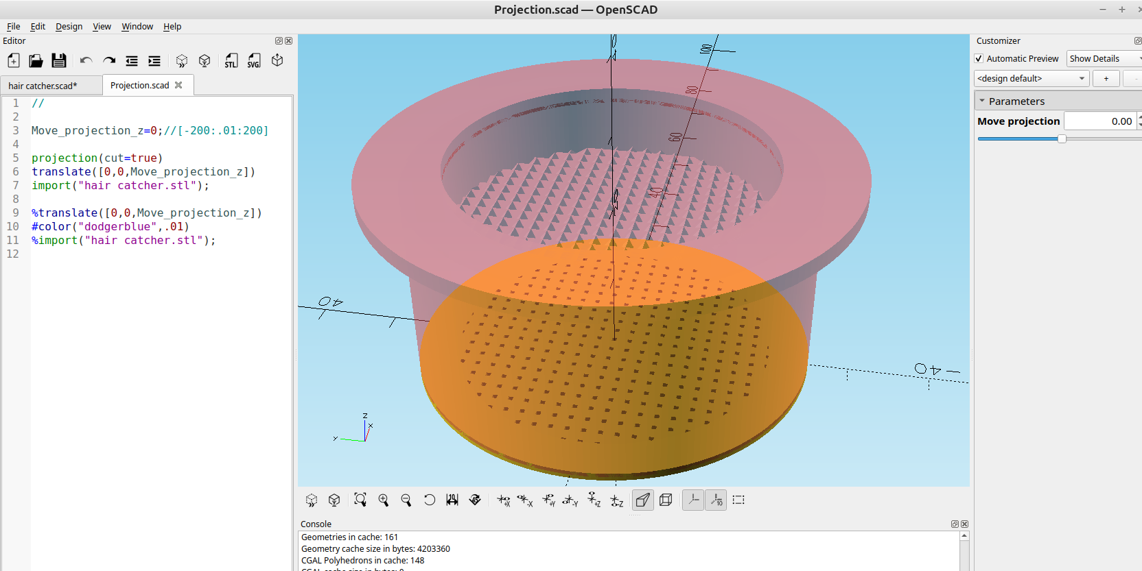 Here is an example of a hair or food catcher for a drain that is a little different. Most designs are a basket with holes, I wanted one that would have a grid that fills the center that I could rotate the grid so the holes are larger at the top and smaller at the botom.